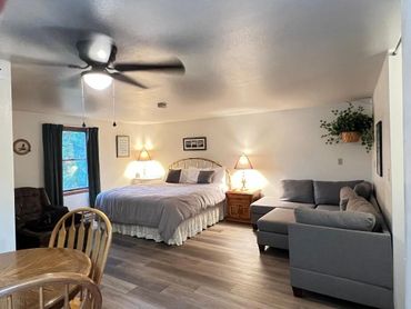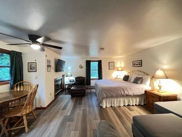 The main house features three bedrooms, with the master bedroom accommodating a king-sized bed and a full-sized bed, while the other two bedrooms are furnished with a queen-sized bed.